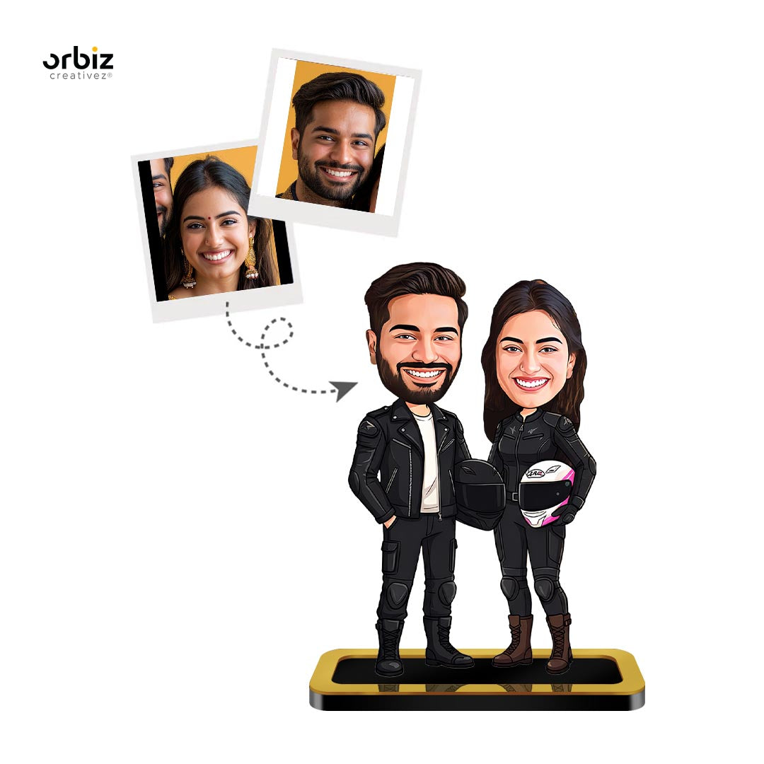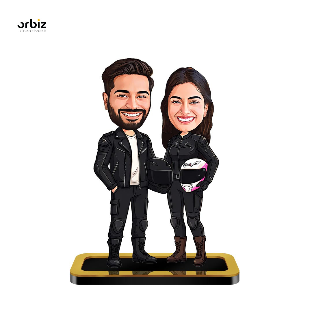Personalized Mini Me: Rider Couple Caricature